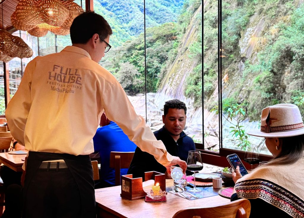 - A lovely atmosphere and a great view: There are complementary details that become essential for a truly magical moment. Few restaurants in Aguas Calientes, like Full House Peruvian Cuisine, embody these qualities: a wonderful view of the mystical Vilcanota River Valley, majestic mountains embracing the horizon, and a serene atmosphere that invites intimacy. Together, they create the perfect setting, worthy of a real romantic dinner.